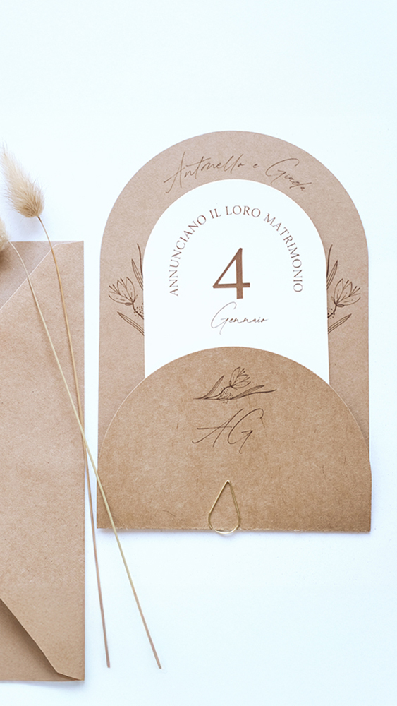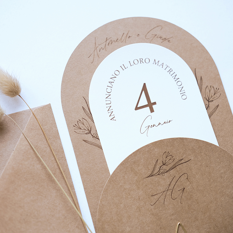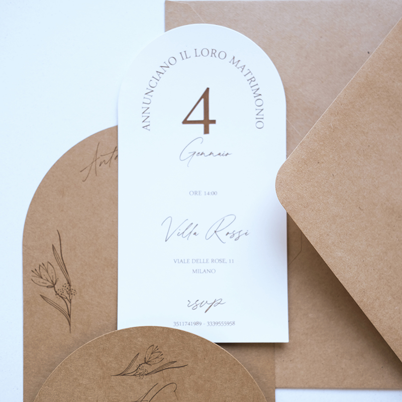 Descrizione: Scopri la collezione Arco Design, una linea di inviti di matrimonio eleganti e moderni caratterizzati da archi e forme geometriche raffinate. Ogni invito è realizzato con carta di alta qualità e curato in ogni dettaglio, pensato per raccontare con stile la storia degli sposi.